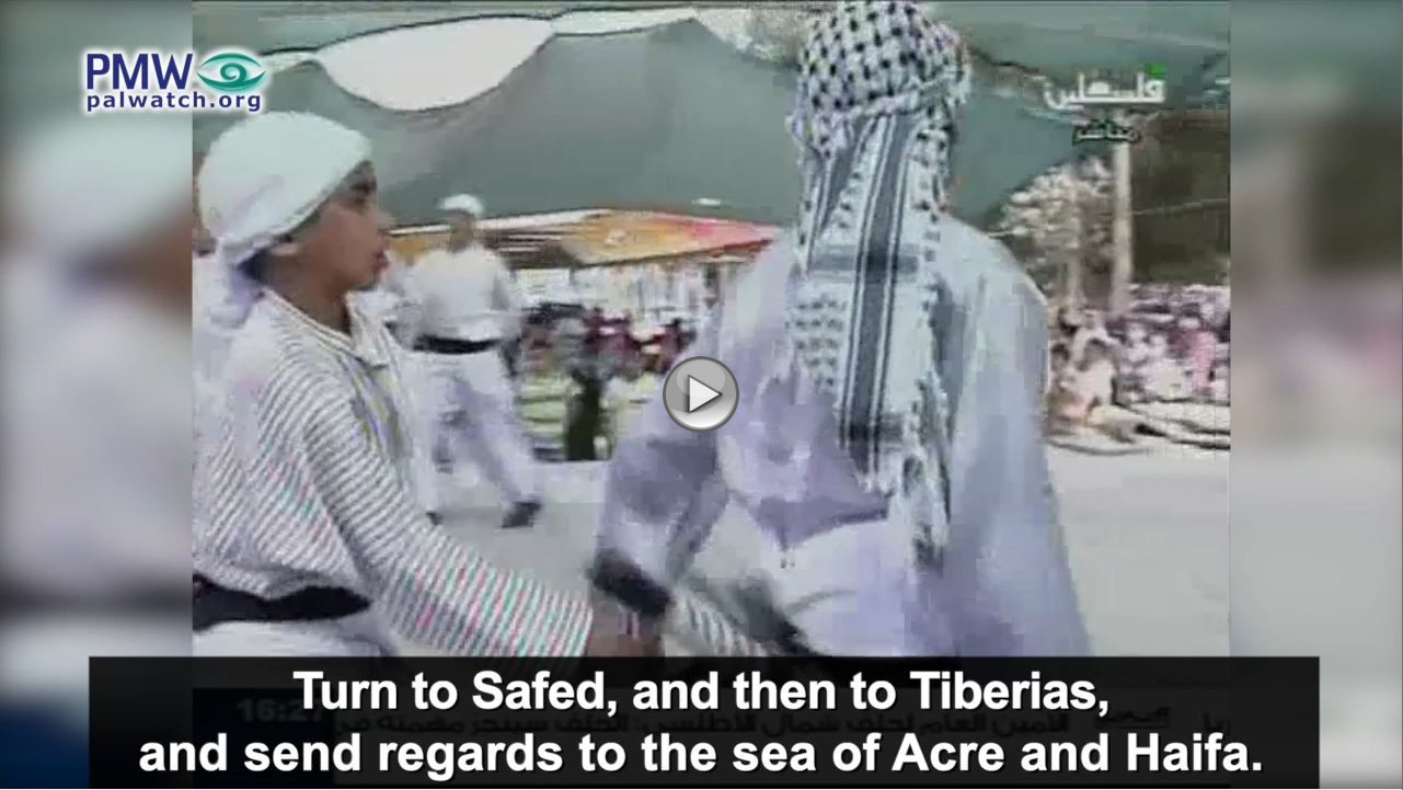 Song and dance broadcast on PA TV, with lyrics depicting all of Israel as part of "my country Palestine":