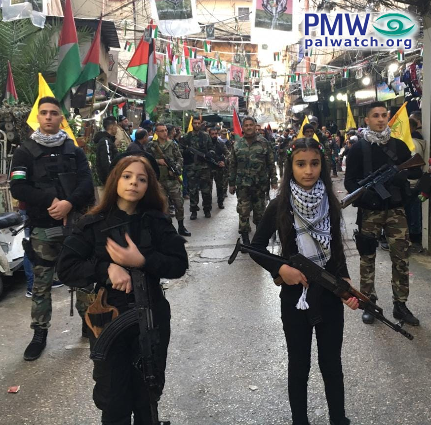 Palestinian Media Watch first exposed this PA child abuse in November 2000 and the PA’s child soldier promotion has never stopped. Two young girls recently sang on PA TV: “In the name of freedom we’ll sacrifice our lives.” (Official PA TV, October 22, 2021)