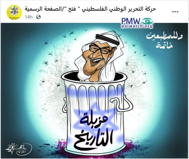 "There is an end for those who seek normalization” - Fatah cartoon shows UAE crown prince in “the dustbin of history”