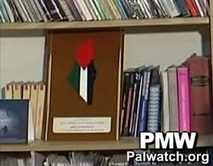 Head of Palestinian National Theater displays map erasing Israel in his office