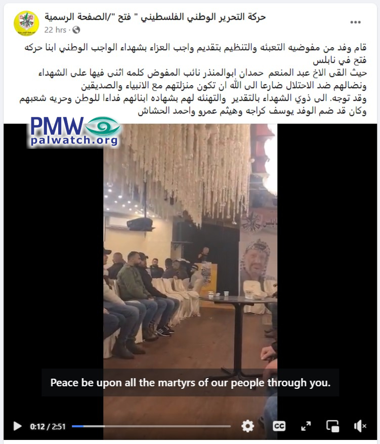 Video and text posted on the official Fatah Facebook page