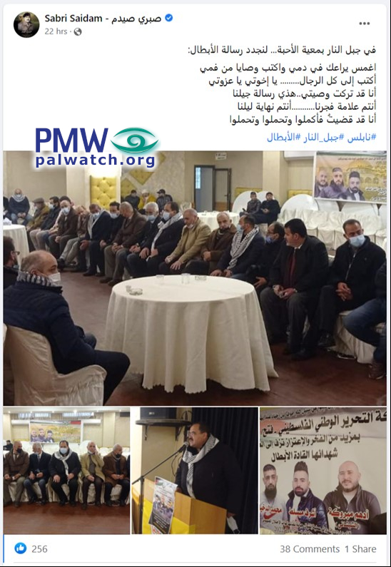 Fatah top Official praises terrorists with gruesome message: "dip your pen in my blood and write the last will from my mouth"