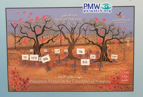 The Palestinian Authority has issued a new stamp in honor of “the Martyrs of the numbered cemeteries” because “their names remain as torches illuminating the path.”