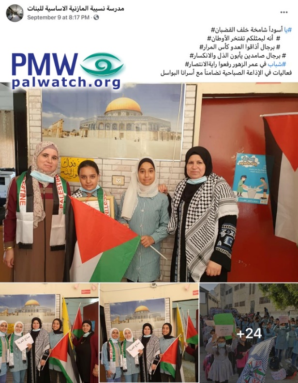 Images and text posted on the Facebook page of the Nusayba Al-Mazeniya Elementary School for Girls