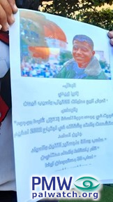 Text on poster in English and Arabic: “Their freedom – our duty”