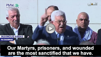 PA Chairman Mahmoud Abbas: "Israel came and said that the Martyrs are criminals, terrorists, and murderers. Shame on you Israel! We will never agree to abandon our Martyrs… Our Martyrs, prisoners, and wounded are the most sanctified that we have. We will not agree to waive our money in full. Our Martyrs have a right to this money."