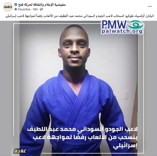 Posted text: “Japan: Tokyo Olympics – Sudanese judoka Mohamed Abdel Latif [Abdalrasool] withdrew from the games because he opposed facing the Israeli athlete.”