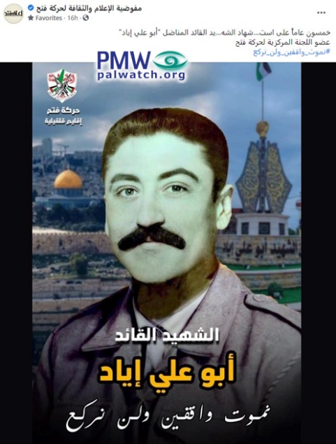 Posted text: “50 years since the death of the Martyr leader, Fatah Movement Central Committee member fighter Abu Ali Iyad.