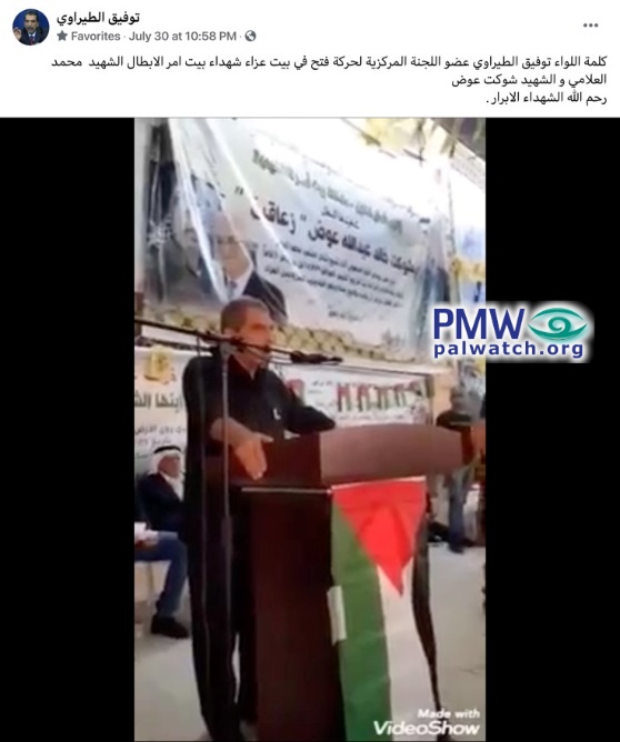 Video posted on the Facebook page of Fatah Central Committee member Tawfiq Tirawi