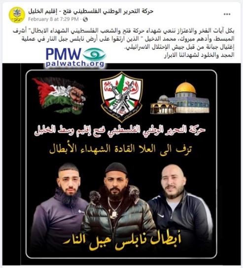 "glory and eternity to our righteous Martyrs" - Fatah calls terrorists "heroic Martyr commanders"