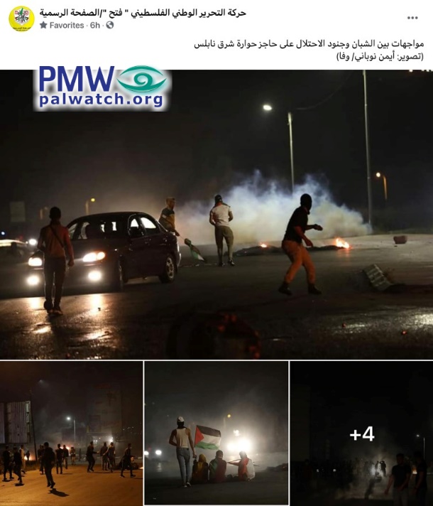 Fatah shows off images of masked Arab rioters throwing rocks at Israeli security forces