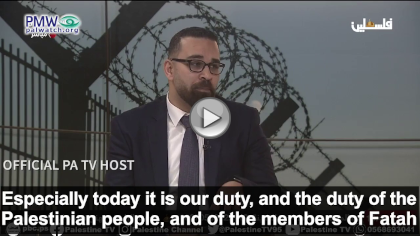 Official PA TV host: "Especially today it is our duty, and the duty of the Palestinian people, and of the members of Fatah to send special greetings to prisoner Thaer Hammad (i.e., terrorist, murdered 10)…