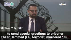 PA TV host instructs viewers to glorify murderer of 10: “It is the duty of the Palestinian people to send special greetings to prisoner Thaer Hammad”