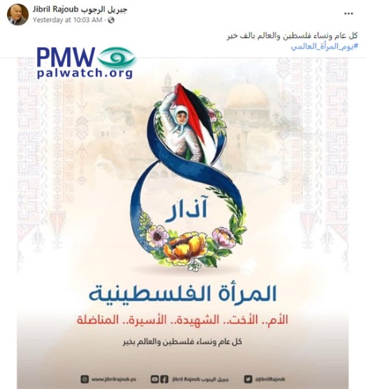 For International Womens' Day, Fatah top Official praises "the Palestinian woman, the Martyr, the prisoner, the fighter"