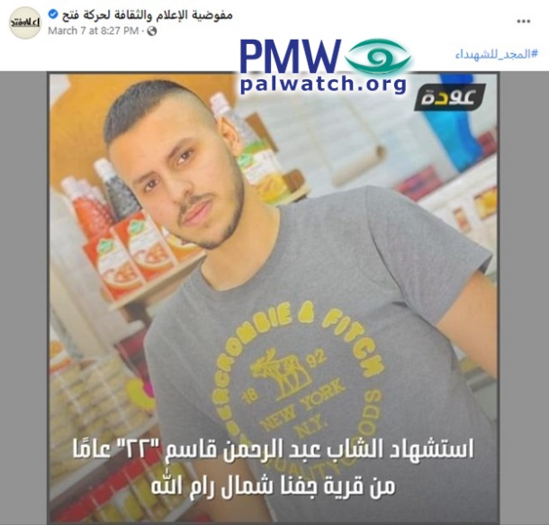 "Praise to the Martyrs" - Terrorist who stabbed two Israeli Police Officers is glorified by Fatah