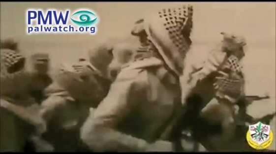 The video shows former PLO and PA Chairman Yasser Arafat and PA Chairman Mahmoud Abbas as well as old footage of Fatah terrorists performing military drills with assault rifles, rocket launchers, and mounted machine guns.