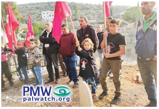 The article includes a picture from the event, in which young children are seen participating in the memorial for the terrorist.