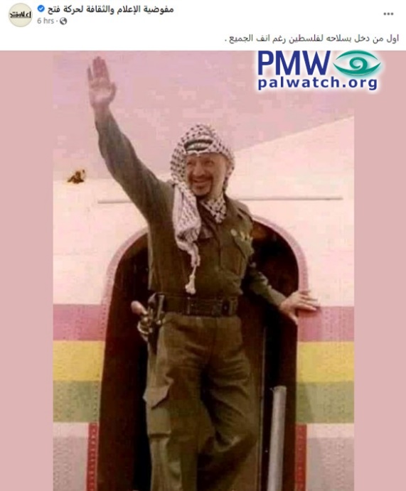 Yasser Arafat was “the first one who entered Palestine with his weapon, in spite of everyone” boasts Fatah