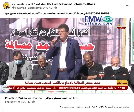 Video posted on the Facebook page of the PLO Commission of Prisoners’ Affairs