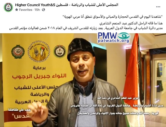 Video posted on the Facebook page of the PLO Supreme Council for Youth and Sports