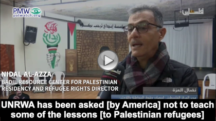 A recent statement issued by Nidal Al-Azza, the director of the vehemently anti-Israel BADIL Resource Center for Palestinian Residency and Refugee Rights, claimed that UNRWA has been asked by the US not to teach some materials that include aspects of incitement: