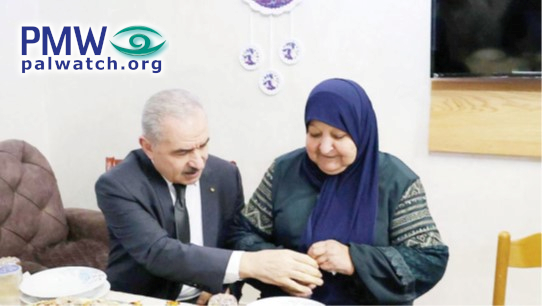 One such event was the visit of none less than the PA Prime Minister Muhammad Shtayyeh and Ramallah District Governor Laila Ghannam with terror mom Latifa Abu Hmeid, who is the mother of 6 murderers – 5 serving life sentences and 1 killed during an attempted arrest. At the fast-breaking mail Shtayyeh and Ghannam shared with Abu Hmeid, Shtayyeh conveyed the special blessings of PA Chairman Mahmoud Abbas: