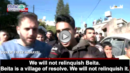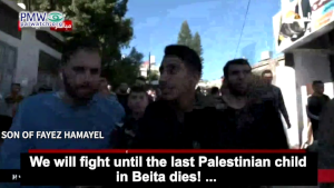 Another teenager vowed to “fight until the last Palestinian child [in the village] dies!” His father was killed while participating in violent riots against Israeli forces in Beita: