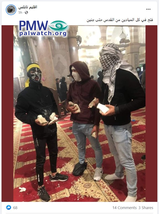 Fatah posts photo of violent Palestinians preparing to throw stones in Al-Aqsa Mosque