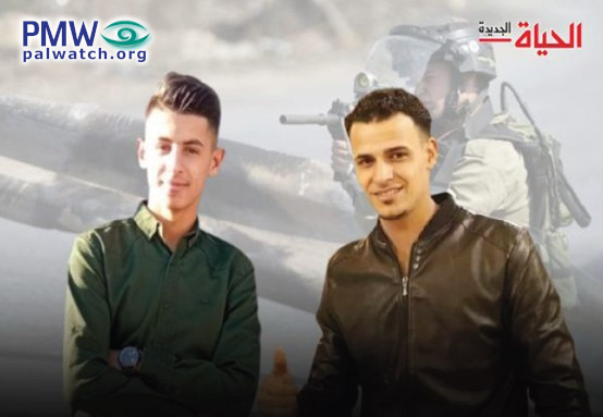 The article includes a picture of terrorist Mu’tasim Atallah on the left and Mahmoud Arram on the right, with an armed Israeli soldier seen in the background.