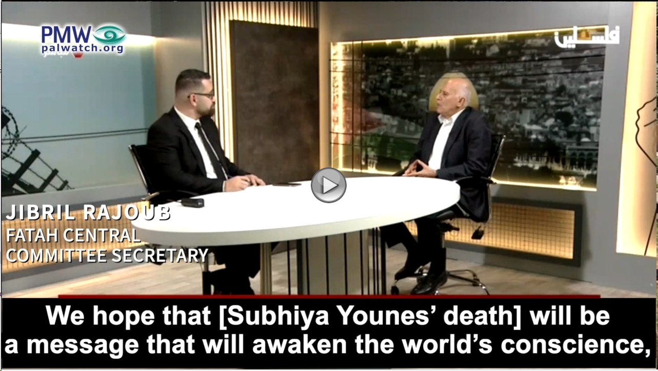 Fatah Central Committee Secretary Jibril Rajoub: “We hope that [Subhiya Younes’ death] will constitute a message that will awaken the world’s conscience, so that it will come out against the new Nazis who are committing acts of terror officially, and whose prisons are an identical copy of Auschwitz and the death camps.”