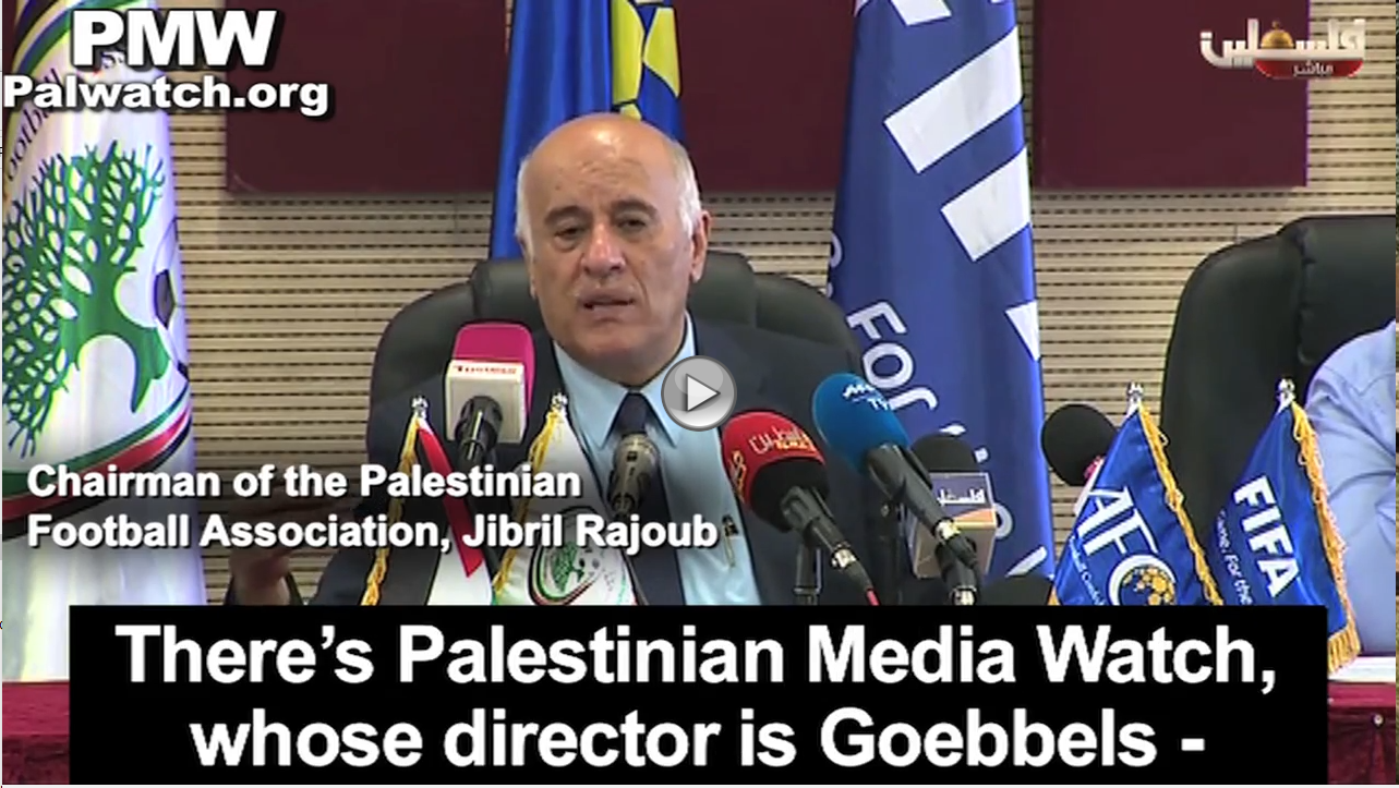Rajoub: "They are waging this war on all fronts. There's Palestinian Media Watch, whose director is Goebbels - Goebbels, Hitler's ideological theorist... He is the Goebbels of the 21st century. He prepared an indictment against me... I traveled to Latin America, and every place I go, believe me, he spreads these accusations. He submitted a complaint to the Olympic Committee, he submitted a complaint to FIFA, and when I traveled to the US - he also spread [his accusations] in the US. The only thing he does is to deal with me."