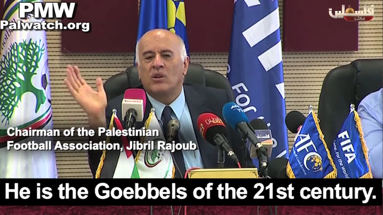 When it comes to comparing Israelis to Nazi propaganda minister Jospeh Goebbels, Rajoub once claimed that Palestinian Media Watch’s director Itamar Marcus is “the Goebbels of the 21st century”:
