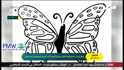 The body of a butterfly is the PA map of “Palestine” that presents all of Israel as “Palestine” together with the PA areas.