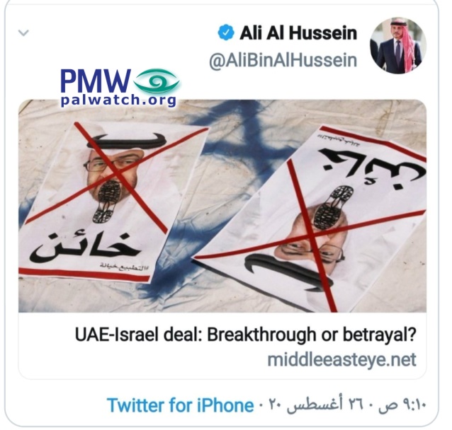 Jordanian Prince deletes tweet bashing the UAE-Israel peace deal