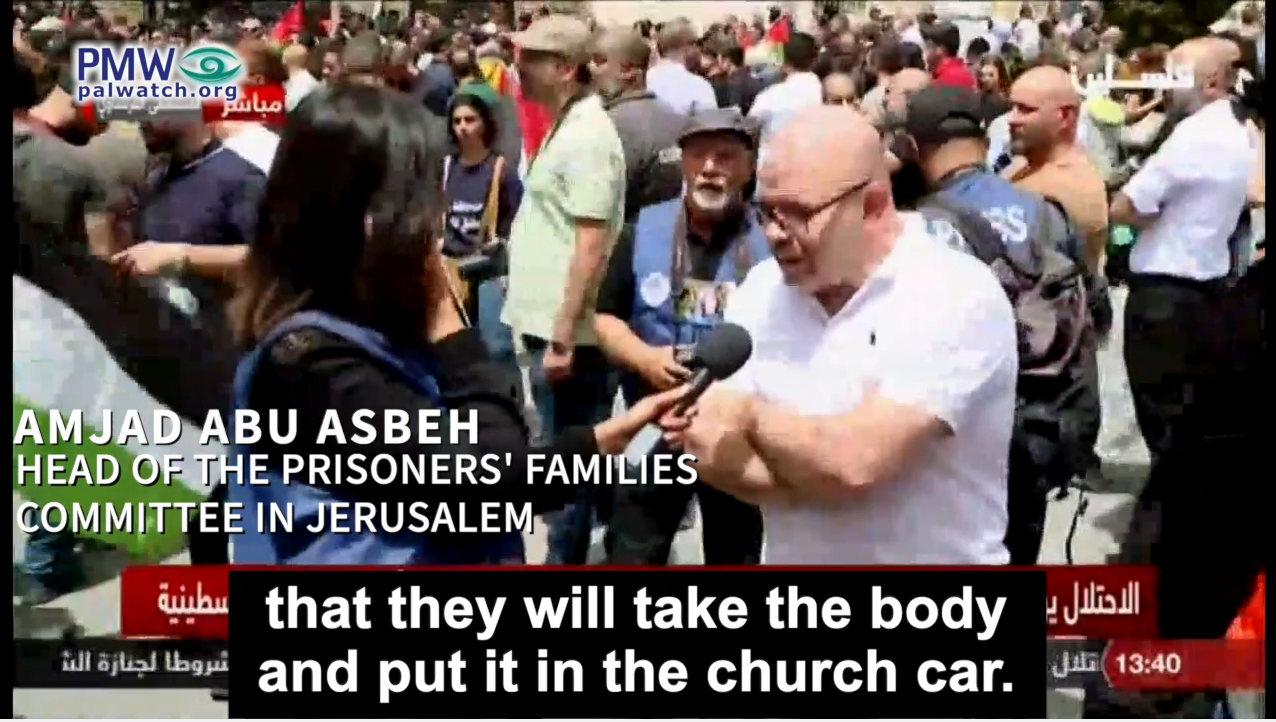 However, when the church’s hearse approached the hospital to take the coffin, the Palestinian mob at the hospital stopped the hearse, and prevented it from approaching.