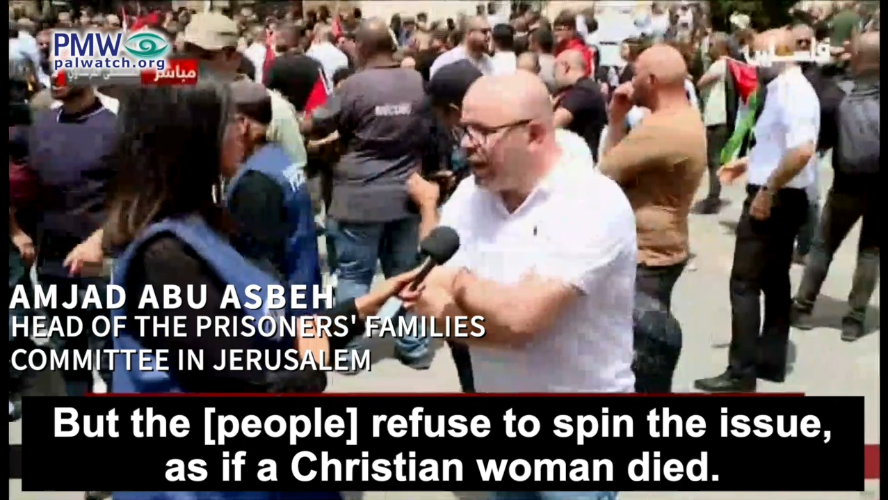 Amjad Abu Asbeh, head of the Prisoners' Families Committee in Jerusalem, explained that the insistence on carrying her on their shoulders is so that it wouldn't seem to be a Christian funeral with a “church car” as had been planned. They didn’t want “to spin the issue as if a Christian woman died” rather they wanted to carry her body on their shoulders – as is Palestinian custom for Shahids – Islamic Martyrs, even though she was a Christian: