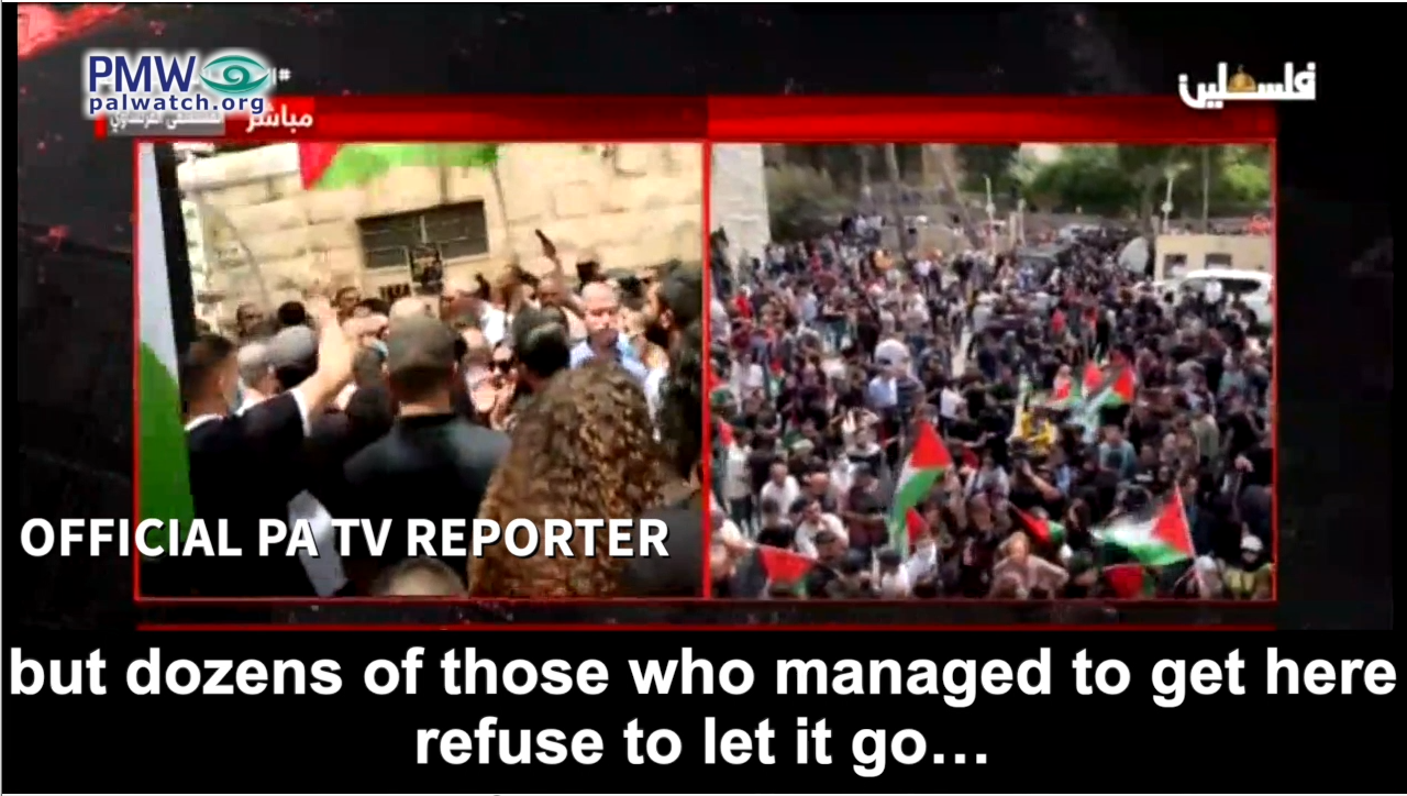“The hearse is waiting for the transfer, but dozens of those who managed to get here refuse to let it go.”[Official PA TV, May 13, 2022]