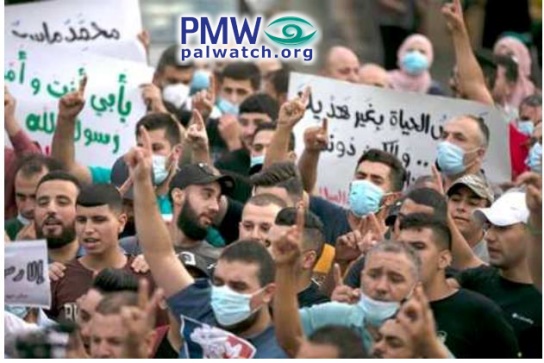 The images show protests held in Ramallah on Oct. 27, 2020, against French satirical magazine Charlie Hebdo’s cartoons of Islam’s Prophet Muhammad.