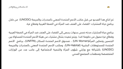 This video was produced by the UN Office on Drugs and Crime (UNODC) through the joint program ‘Life’ – eradicating violence against women in the West Bank and Gaza Strip.
