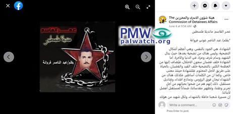 Image and text posted on the Facebook page of the PLO Commission of Prisoners’ Affairs