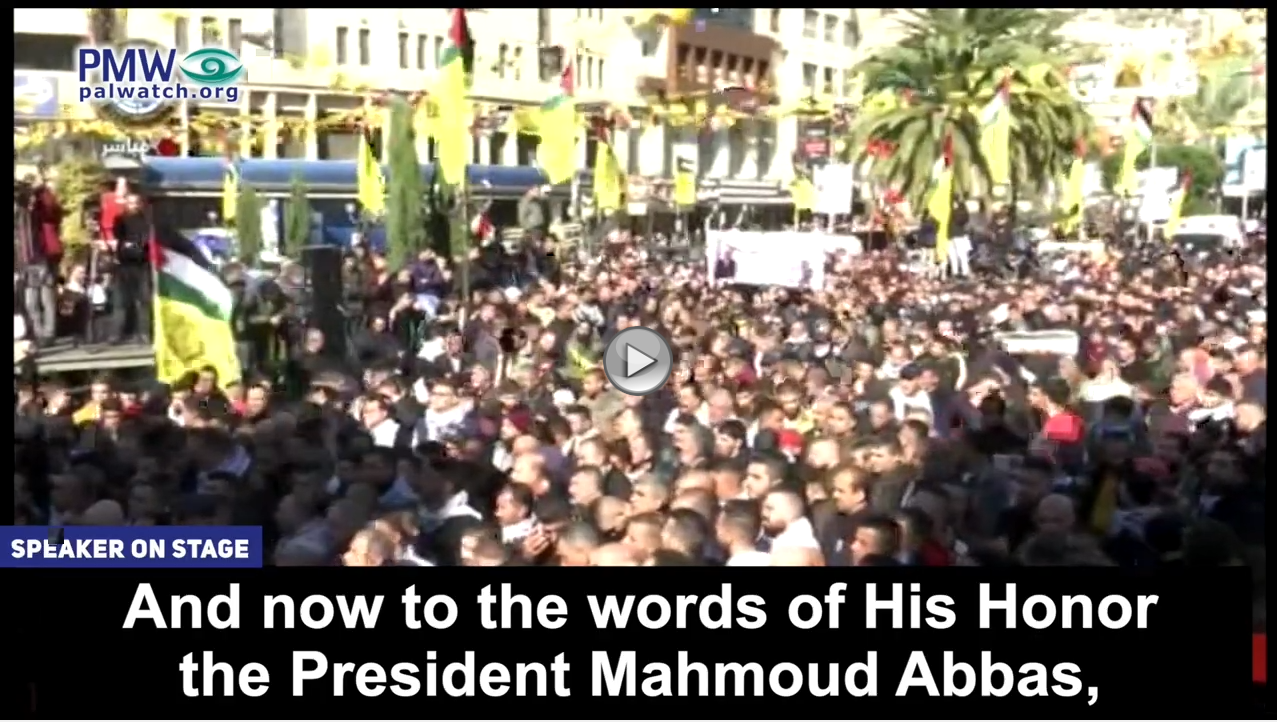 Speaker on stage: “And now to the words of His Honor the President Mahmoud Abbas, presented by brother Ibrahim Ramadan, District Governor of Nablus.”