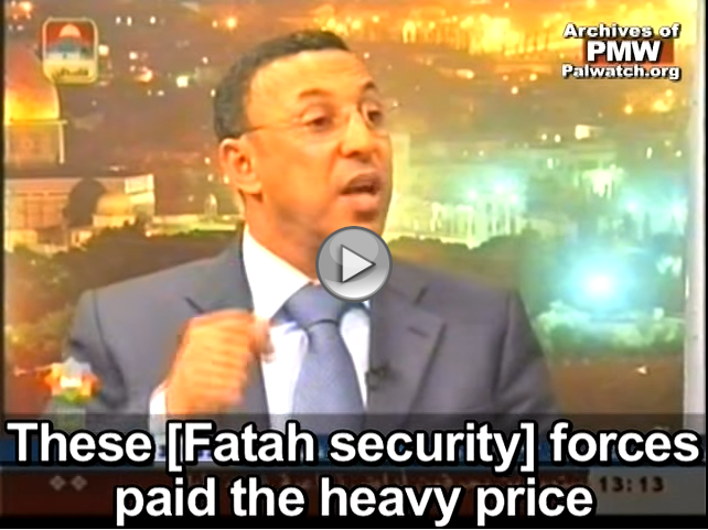 “These [Palestinian Authority Security] Forces paid the heavy price in the second Intifada (i.e., PA terror campaign, 2000-2005), both as Shahids [Martyrs] and as prisoners. The greatest number of prisoners is from the Security Forces sector. They are the ones who bore arms and carried out the greatest and most important operations [terror attacks] against the Israeli occupation - and especially against soldiers, and some of the most famous operations [terror attacks] in the West Bank - Ein-Arik, Wadi Al-Haramiyeh, Sorda, and others. These were carried out by the heroes of the Palestinian Security Forces, who protected the homeland and the national interest, while Hamas merely looked on for many months before embarking [on terrorist attacks]."