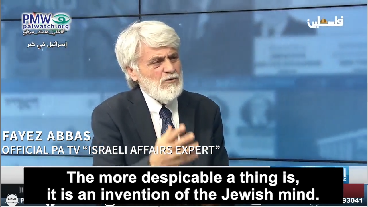 Official PA TV “Israeli affairs expert” Fayez Abbas: “We know that the Jewish mind always invents things. The more despicable a thing is, it is an invention of the Jewish mind.”