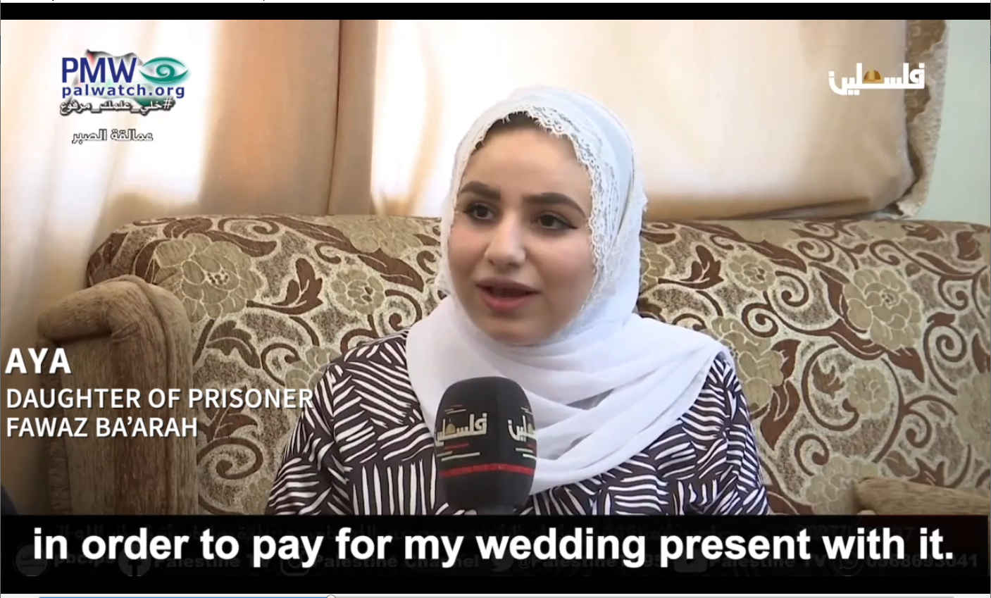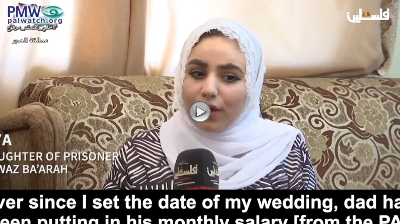 A recent interview with the daughter of a terrorist prisoner again supports this conclusion. The daughter explained that her imprisoned father began transferring his “monthly salary” from the PA to her as soon as he heard she was getting married: