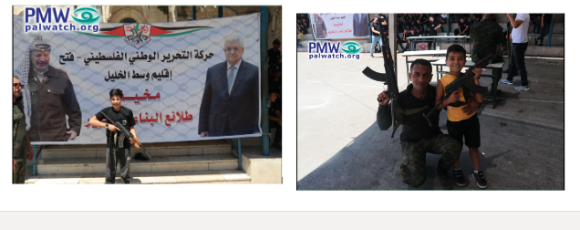 Three weeks ago, Palestinian Media Watch exposed scores of pictures of Palestinian children participating in Fatah summer camps posing with weapons. The pictures were posted on the Facebook page of Mahmoud Abbas’ Fatah Movement in Hebron.