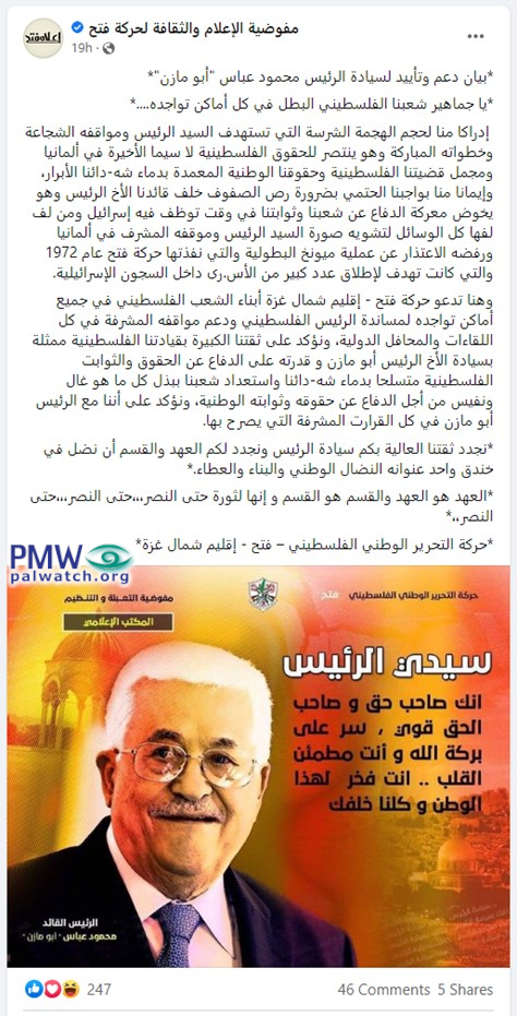 Posted text: “A statement of support for [PA] President Mahmoud Abbas
