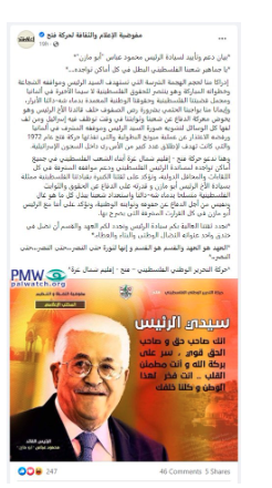 Posted text: “A statement of support for [PA] President Mahmoud Abbas