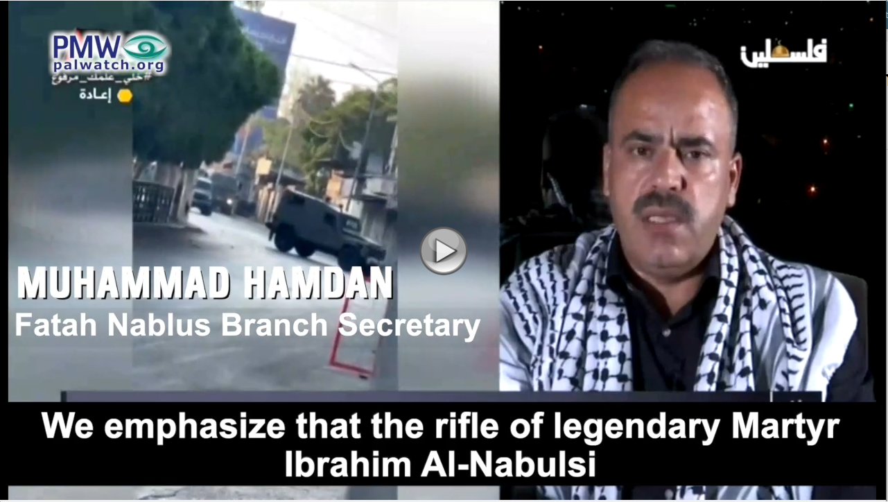 Fatah Nablus Branch Secretary Muhammad Hamdan: “We emphasize that the rifle of legendary Martyr Ibrahim Al-Nabulsi prevented the entry of the settlers to Joseph’s Tomb (i.e., shooting attack on Jews). His comrades on the path carry his last will today and will continue to carry the rifle to prevent the settlers from instigating disturbances next to Nablus, at the checkpoints, and at the points of contact with our civilians, and will continue the confrontation with the occupier.”
