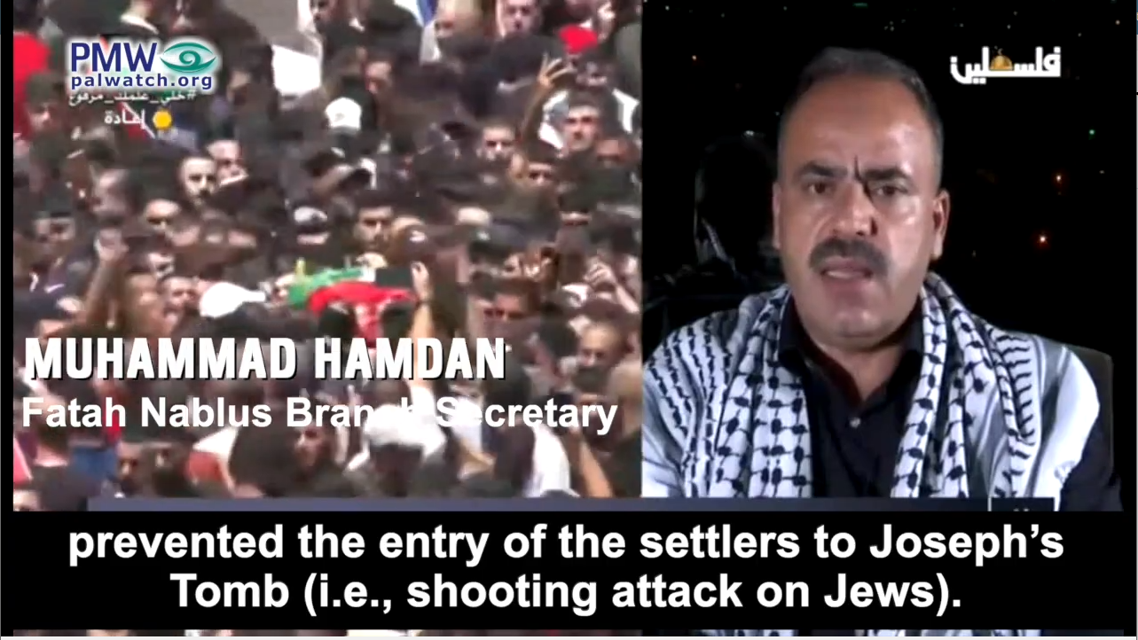 A Fatah official promoted continued terrorist shooting at Jews praying at Joseph’s Tomb, crediting terrorist shooter Al-Nabulsi with “preventing settlers” from accessing the holy site: