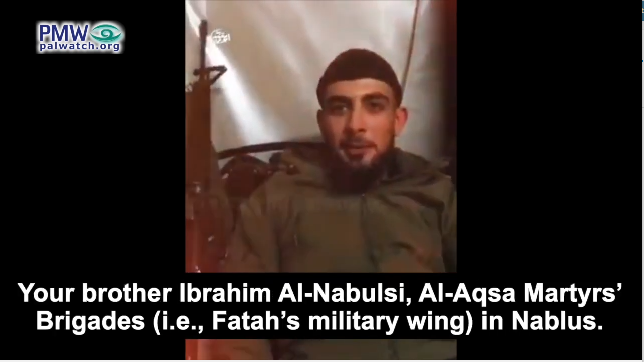 Abbas’ Fatah Movement posted terrorist Al-Nabulsi’s farewell video in which he proclaimed “victory or Martyrdom,” labeled the Jewish faith “a falsified lie,” and encouraged others to continue terror:
